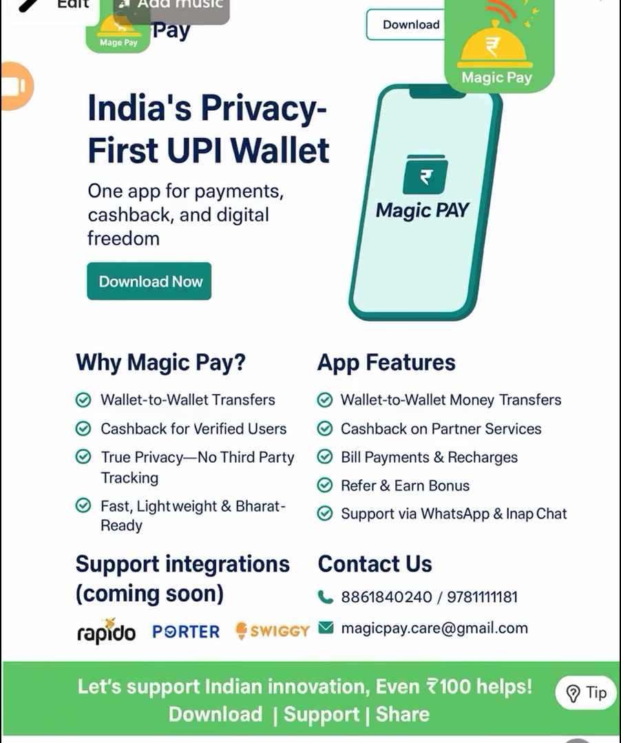 India’s first privacy-focused digital wallet offering 50+ services, from UPI payments to travel, insurance, recharges, and more.